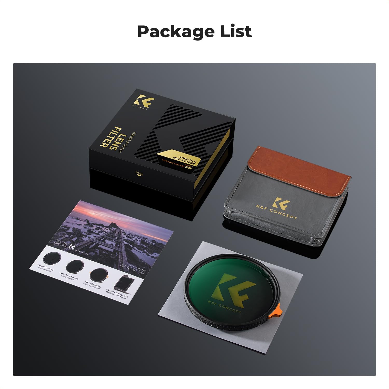 KF Concept KF01.2376 46mm Variable ND2-ND400 Lens Filter (1-9 Stops) 28 Multi-Layer Green Coatings HD Waterproof Scratch Resistant (Nano-X Series)