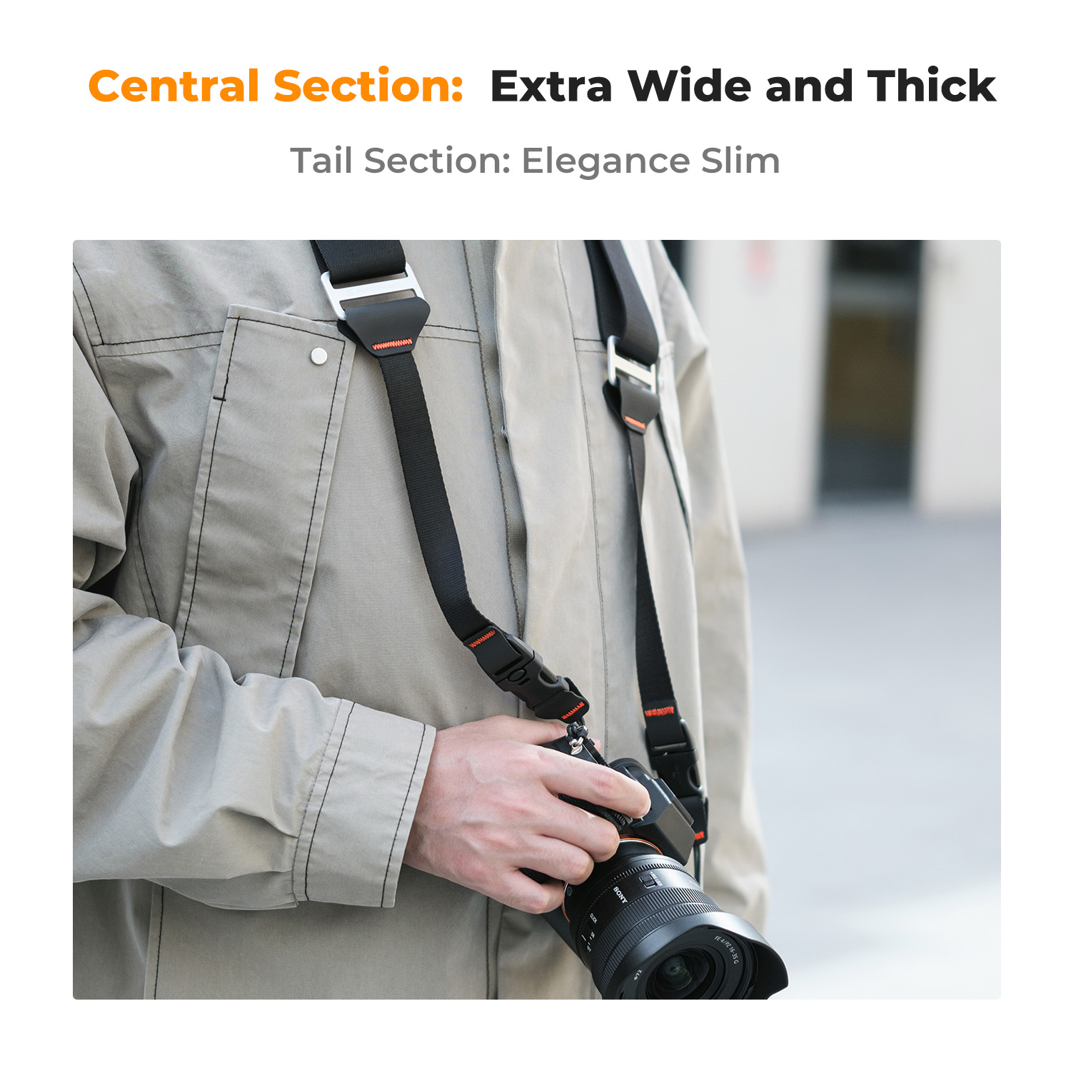 Napravljen od materijala nalik sigurnosnom pojasu, povećava bezbednost i štiti kameru od rizika od pada, uz moderan dizajn i ergonomiju za dugotrajnu upotrebu.