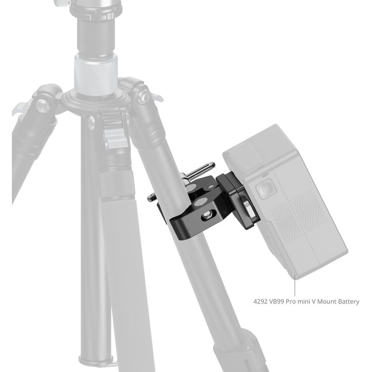 ,,V-Lock“ nosač sa ,,crab-style: stegom od SmallRig može se montirati na stative, noge stativa, stubove, police, ivice stolova i slične površine debljine 0,6–1,6″. Pruža ,,quick release“ V-Lock prijemnik za montažu baterije ili V-Lock dodatka, uz ,,crab-style“ stegu sa T-Bar zatvaračem. Gumena obloga na čeljustima sprečava ogrebotine na površinama. Izdržljiva aluminijumska stega podržava teret do 1,5 kg (3,3 lb).